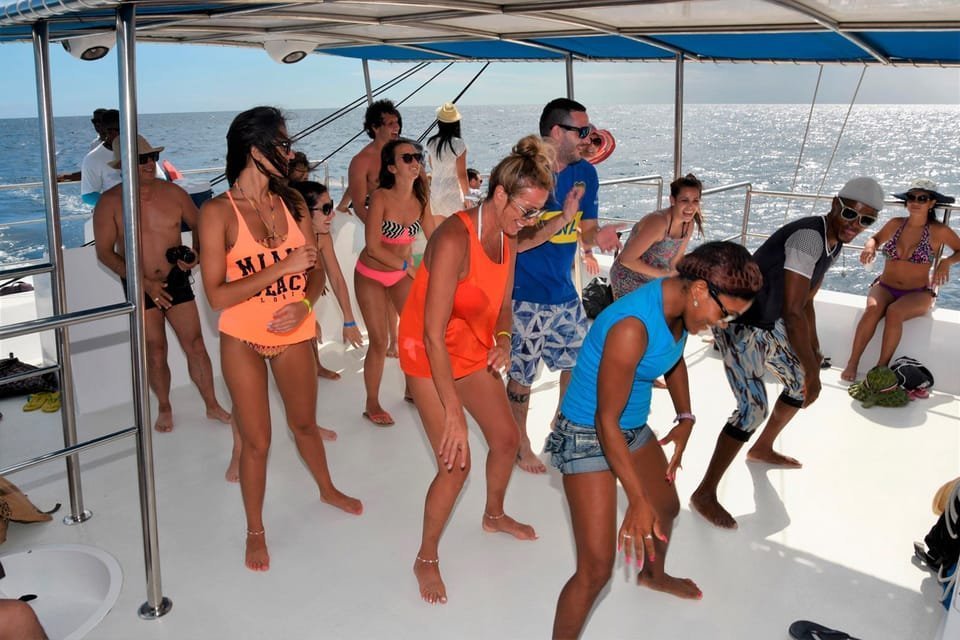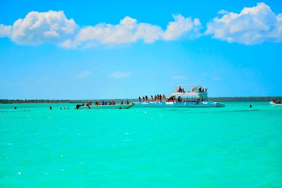 – 9:00-10:00 AM: Our adventure begins as we depart from the charming town of Bayahibe. As we glide over the shimmering sea aboard a spacious catamaran, prepare for an exhilarating experience filled with music, lively entertainment, and a variety of drinks to keep the vibe festive.